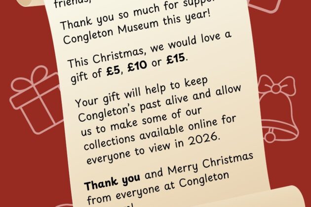 Support Congleton Museum this Christmas and New Year. Help us bring our entire collection online. Donate £5 or £10, or become a member for £15 a year.